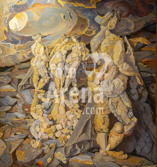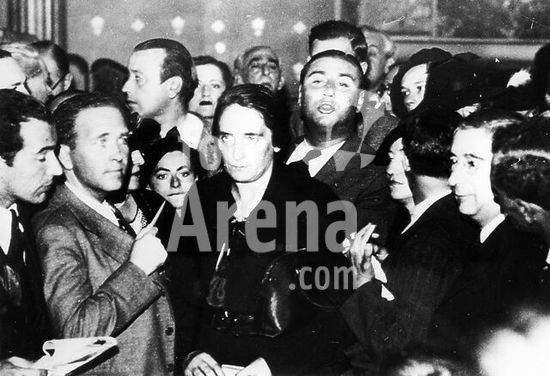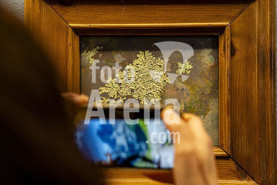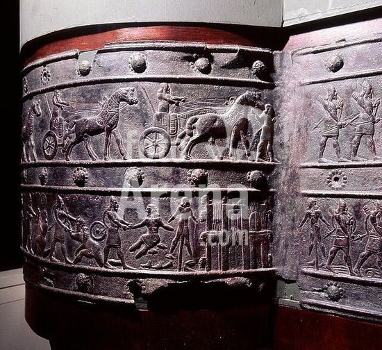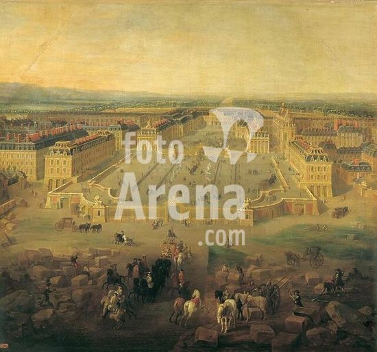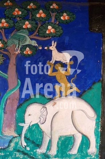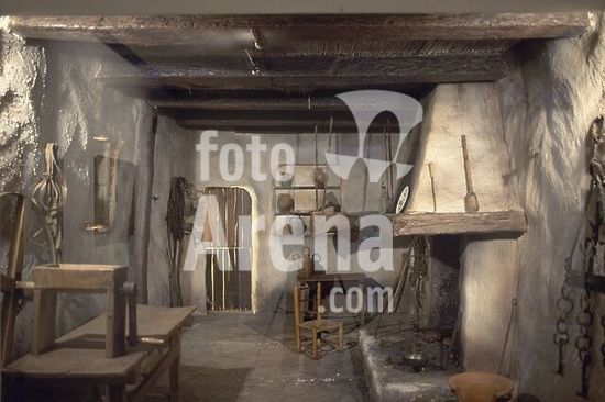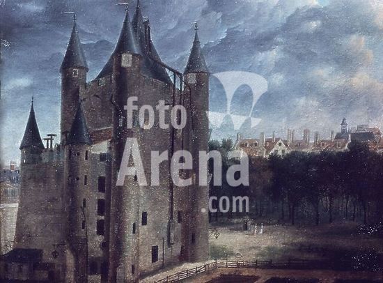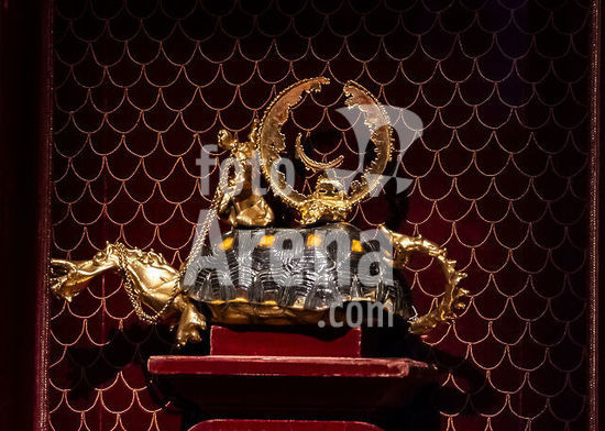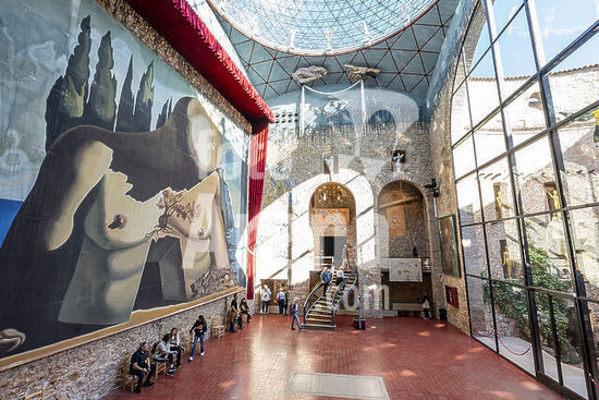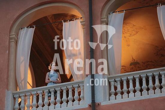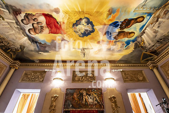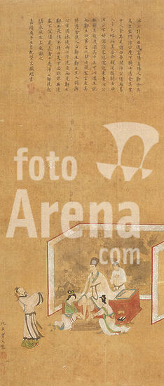 Mantua-Mantova (Lombardy, Italy), Palazzo Ducale, Castello S.Giorgio, Camera degli Sposi (frescos, c.1465-74, by Andrea Mantegna; 1431-1506).-Interior view looking northwest: west wall with "Meeting between Ludovico III Gonazaga and his son Francesco", north wall with "Court of Ludovico III".-Photo.