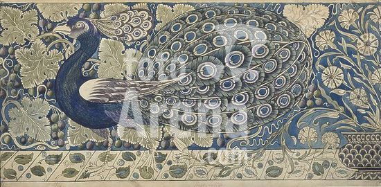 alb20441858 William Frend de Morgan/ Design for a tile panel with peacock, Drawing1872-1907 (made).