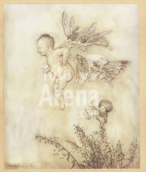alb20441860 Arthur Rackham: They all tickled him on the shoulder - from Peter Pan, vintage print 1906.