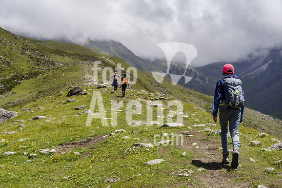 alb21651004 Hikers near Minya Konka, Daxue Mountain Range, Garze Prefecture, Sichuan, China.