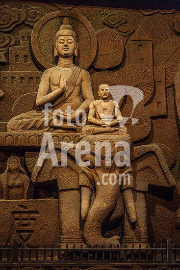 alb21650996 monks having a debate about a tiger, underground palace, Oriental Buddha Park, Leshan city, Sichuan, China, Asia.