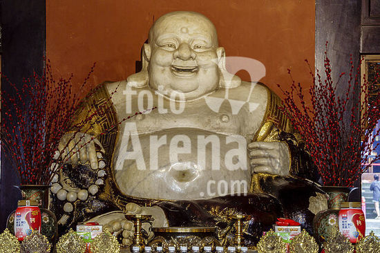 alb21650989 Happy Buddha, Lingyun Temple (713 AD), historic Buddhist shrine, Leshan Big Buddha Park, Leshan, Sichuan, China, Asia.