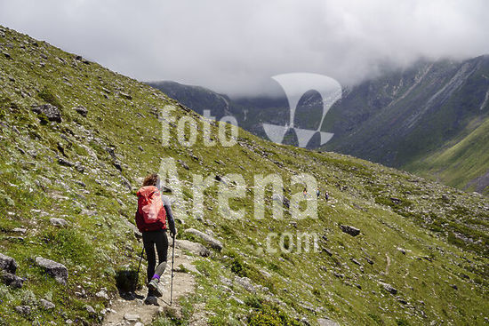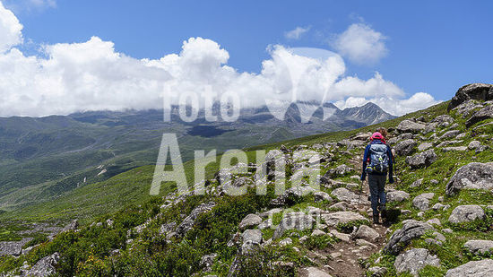 alb21651013 Hikers near Minya Konka, Daxue Mountain Range, Garze Prefecture, Sichuan, China.