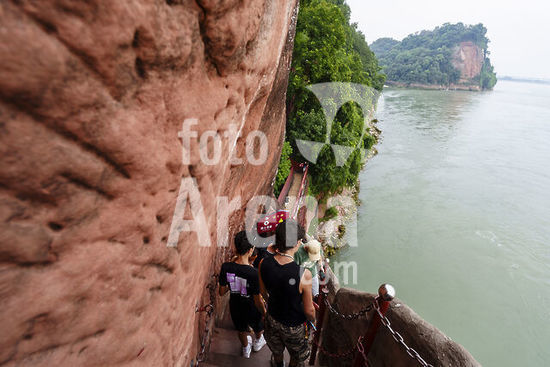 alb21651011 stairs leading down to the Great Buddha, Leshan Big Buddha Park, Leshan, Sichuan, China, Asia.