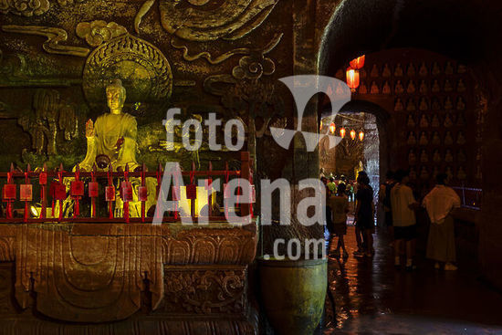 alb21650960 lit lamp of Buddha, Oriental Buddha Park, cavity of the eighteen Arhats, Leshan city, Sichuan, China, Asia.