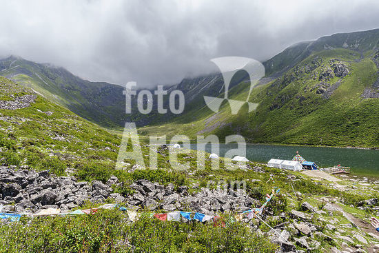 alb21651370 camp in Heihaizi lake, Daxue Mountain Range, Garze Prefecture, Sichuan, China.