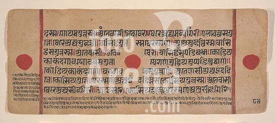 alb3681621 Page from a Dispersed Kalpa Sutra (Jain Book of Rituals). Culture: India (Gujarat). Dimensions: 4 3/8 x 10 5/8 in. (11.1 x 27 cm). Date: 15th century. Museum: Metropolitan Museum of Art, New York, USA.