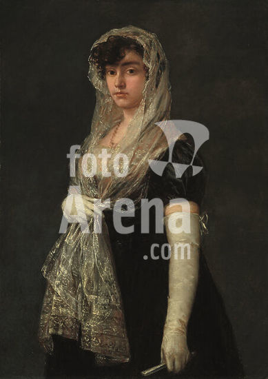 alb3712593 Young Lady Wearing a Mantilla and Basquina. Dated: c. 1800/1805. Dimensions: overall: 109.5 x 77.5 cm (43 1/8 x 30 1/2 in.) framed: 125.4 x 93.6 x 6 cm (49 3/8 x 36 7/8 x 2 3/8 in.). Medium: oil on canvas. Museum: National Gallery of Art, Washington DC. Author: FRANCISCO DE GOYA.