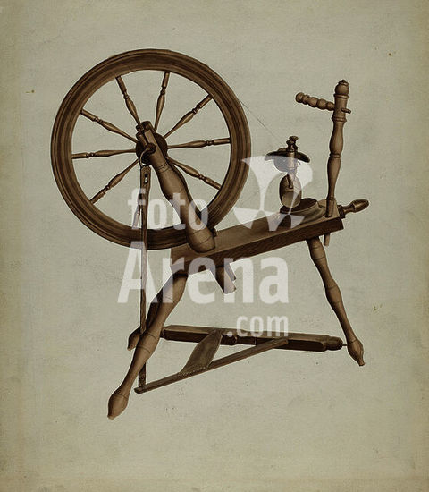 alb3712606 Shaker Flax Spinning Wheel. Dated: c. 1936. Dimensions: overall: 26.9 x 22.9 cm (10 9/16 x 9 in.) Original IAD Object: 35 1/2" high; 26" wide. Medium: watercolor and graphite on paper. Museum: National Gallery of Art, Washington DC. Author: Lon Cronk.