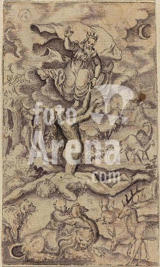alb3715340 The Creation of Eve. Dimensions: Overall: 8.8 x 5.2 cm (3 7/16 x 2 1/16 in.) support: 16.3 x 12.5 cm (6 7/16 x 4 15/16 in.). Medium: pen and black and violet ink on laid paper. Museum: National Gallery of Art, Washington DC. Author: Virgil Solis.