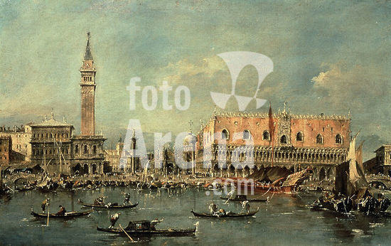 alb374656 Venice from Grand Canal showing Ducale Palace Saint Mark Square and Campanile. Museum: Gulbenkian Foundation, LISBOA, PORTUGAL. Author: FRANCESCO GUARDI.