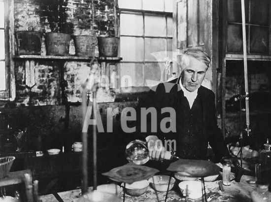 akg021570 Edison, Thomas Alva American electrochemist, technician and inventor, Milan (Ohio) 11.2.1847 - West Orange. (N.J.) 18.10.1931. Portrait photo at his worktable, c. 1910.