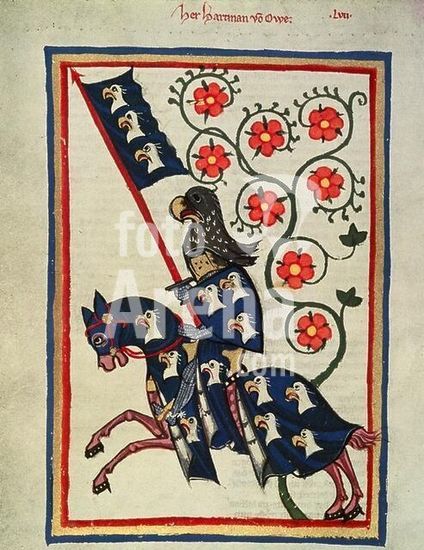 akg044368 Illumination, Zurich, c. 1310-1340. Herr Hartmann von Aue. Parchment. Fr.: Große Heidelberger Liederhandschrift. (Codex Manesse). Heidelberg, Universitätsbibliothek, Cod. Pal. Germ. 848. Heidelberg, Universitätsbibliothek. Museum: Heidelberg, Universitätsbibliothek. Author: ANONYMOUS.