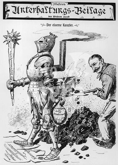 akg130993 re: Bismarck, Otto von; German statesman. (chancellor 1871-90); 1815-1898. - "The Iron Chancellor. A Dream of the Junker and Stirrer." (Caricature: Count Klinkowström as a representation of the continuation of Bismarck's politics). Drawing, anon. From: Der Wahre Jacob, No. 357, Stuttgart. (J.H.W.Dietz) 27 March 1900, p. 3209. Berlin, Sammlung Archiv für Kunst und Geschichte. Museum: Berlin, Sammlung Archiv für Kunst und Geschichte. Author: ANONYMOUS.