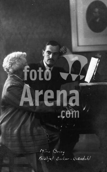 akg159434 Grieg, Nina (née Hagerup) cantatrice norvégienne (soprano), mariée au compositeur Edvard Grieg ; 1845-1935. - Nina Grieg avec le compositeur et pianiste Fridtjof Backer-Gröndahl.-.