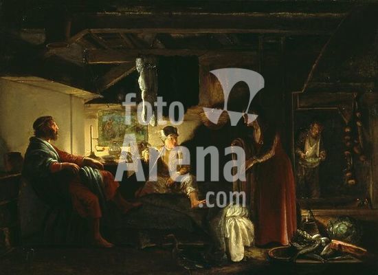 akg207206 Elsheimer, Adam 1578-1610. "Jupiter und Mercury at Philemon's and Baucis'", c. 1609/10. (Ovid, Met. VIII, 618f.). Oil on copper, 16.5 × 22.5cm. Dresden, Gemäldegalerie, Alte Meister. Museum: Dresden, Gemäldegalerie, Alte Meister.