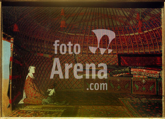 akg2427643 Ethnology / Kyrgyzstan:. "In the Tent of a Rich Kirghiz". Study. Painting, 1869-1970, by Wassily W. Werestschagin (1842-1904). Oil on canvas, 27 × 36.6 cm. Moscow, Tretjakov Gallery. Museum: Moskau, Staatliche Tretjakow-Galerie. Author: VASILY V. VERESCHAGIN. WASSILI WASSILJEWITSCH WERESCHTSCHAGIN.