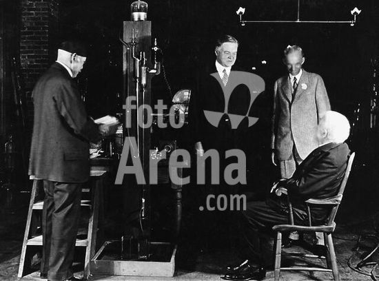 akg253453 Hoover, Herbert Clark; 31st president of the USA (1929-33); West Branch (Ia.). 10.8.1874 - New York 20.10.1964. President Hoover (middle) with Henry Ford (standing right), 1929, on a visit at the laboratory of Thomas A.Edison (sitting right). Photo.