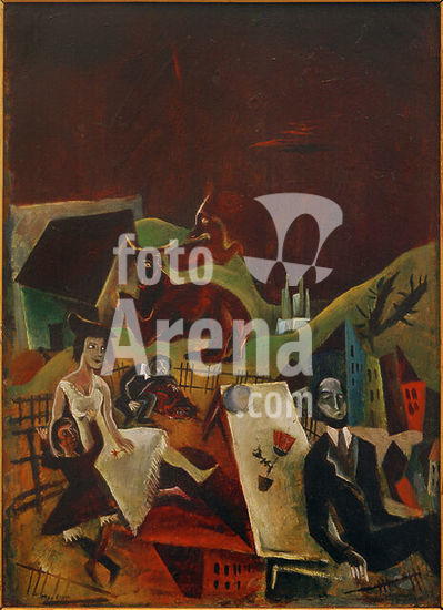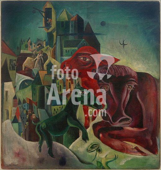 Max Ernst; 1891-1976. "La Victoire de Samothrace" (The Nike of Samothrace), 1923. Oil on wood, carved in black ground, 34 × 26 cm. Private collection. Copyright: © Max Ernst. This artwork is not in the public domain. Additional copyright clearance may be required before use of this image.