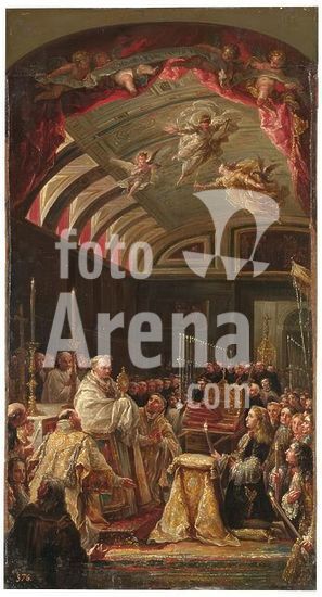 alb11621626 Vicente López Portaña (Copy after: Coello, Claudio) / 'The Adoration of the Sacred Form'. Ca. 1792. Oil on canvas mounted on panel. Museum: Museo del Prado, Madrid, España.