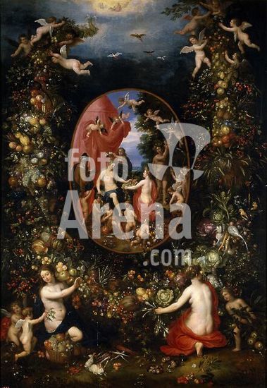 alb2068525 Hendrik van Balen; Jan Brueghel 'el Viejo' / 'Cybele and the Seasons in a Garland of Fruit', Before 1618, Flemish School, Oil on panel, 106 cm x 75 cm, P01414. Museum: MUSEO DEL PRADO, MADRID, SPAIN.