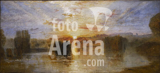 alb21123857 J. M. W. Turner, The Lake, Petworth, Sunset, Sample Study, 1827-28 , Oil paint on canvas, London, England.