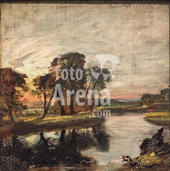 alb21123938 John Constable , The River Stour at Sunset, Looking Towards Dedham, 1809-10 , Oil paint on paper, London, England.
