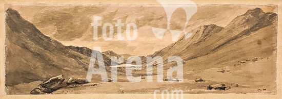 alb21123954 J. M. W. Turner, Buttermere Lake, with part of Cromackwater, Cumberland, a Shower , 1798 , Oil paint on canvas, London, England.