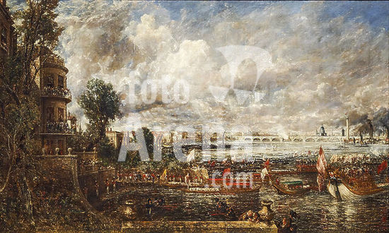 alb21123904 John Constable , The Opening of Waterloo Bridge, seen from Whitehall Stairs, London, 18 June 1817 , 1819, Oil paint on canvas, London, England.