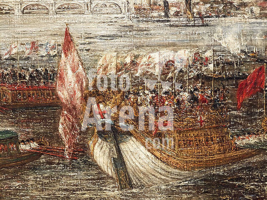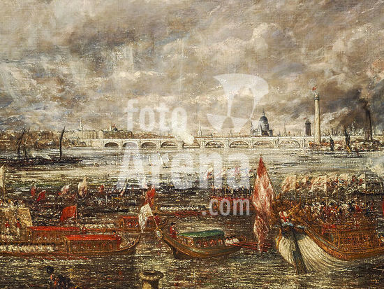 alb21123905 John Constable ,detail of The Opening of Waterloo Bridge, seen from Whitehall Stairs, London, 18 June 1817 , 1819, Oil paint on canvas, London, England.