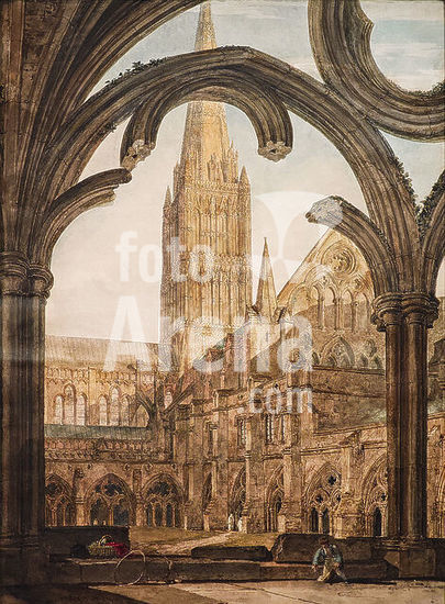 alb21123909 J. M. W. Turner, South view of Salysbury Cathedral from the Cloisters , 1802 , Watercolour on paper, London, England.