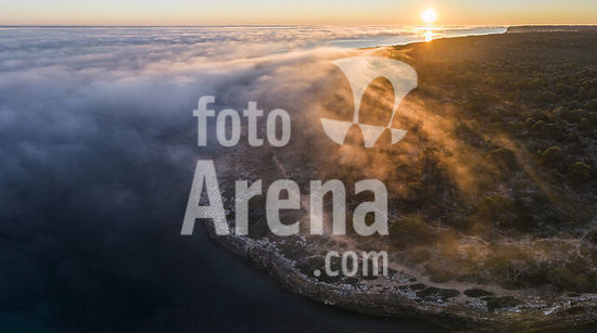 alb22609073 Beltrán cove and the coast of Cala Pi covered by fog, llucmajor, Mallorca, Balearic Islands, Spain.
