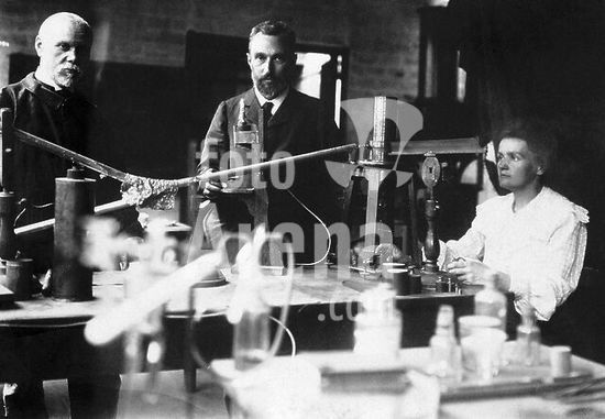 alb318574 In the laboratory of Mr. and Mme. Curie while taking a measurement of radioactivity. MARIE CURIE.