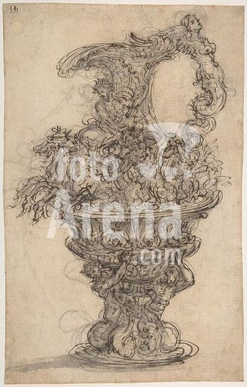 alb3604380 Design for a Ewer with Neptune on his Chariot. Artist: Giovanni Battista Foggini (Italian, Florence 1652-1725 Florence). Dimensions: sheet: 10 11/16 x 6 15/16 in. (27.2 x 17.6 cm). Date: 1652-1725. Museum: Metropolitan Museum of Art, New York, USA.