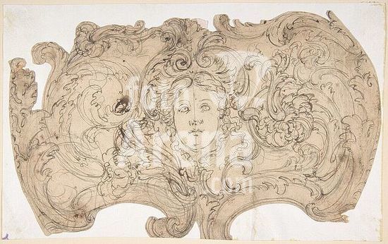 alb3623084 Design for a Cartouche. Artist: Attributed to Giovanni Battista Foggini (Italian, Florence 1652-1725 Florence). Dimensions: sheet: 3 15/16 x 2 3/4 in. (10 x 7 cm). Date: 1652-1725. Museum: Metropolitan Museum of Art, New York, USA.