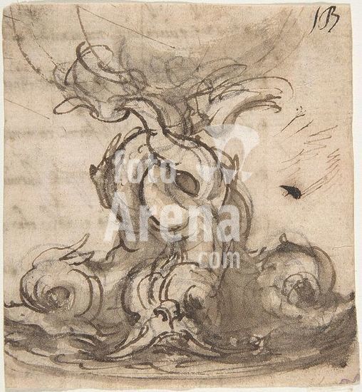 alb3605065 Design for the Base of a Vessel with Three Dolphins. Artist: Giovanni Battista Foggini (Italian, Florence 1652-1725 Florence). Dimensions: sheet: 3 7/16 x 3 1/8 in. (8.7 x 8 cm). Date: 1652-1725. Museum: Metropolitan Museum of Art, New York, USA.