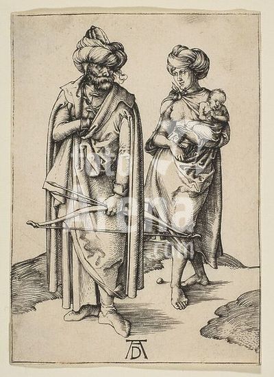 alb3605248 The Turkish Family. Artist: Albrecht Dürer (German, Nuremberg 1471-1528 Nuremberg). Dimensions: sheet: 4 x 2 7/8 in. (10.2 x 7.3 cm). Trimmed to platemark.. Date: ca. 1496. Museum: Metropolitan Museum of Art, New York, USA.