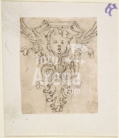 alb3606039 Design for a Console or Capital with a Cherub. Artist: Giovanni Battista Foggini (Italian, Florence 1652-1725 Florence). Dimensions: sheet: 2 7/16 x 1 15/16 in. (6.2 x 5 cm). Date: 1652-1725. Museum: Metropolitan Museum of Art, New York, USA.