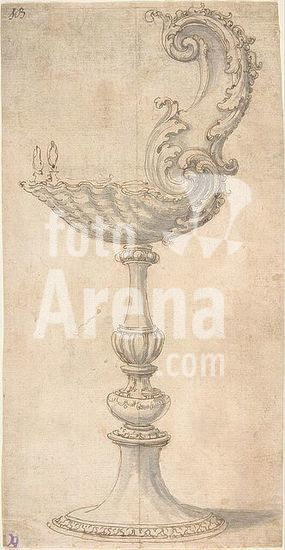 alb3606040 Design for a Cup or Reliquary Composed of a Shell and S-Volute. Artist: Attributed to Giovanni Battista Foggini (Italian, Florence 1652-1725 Florence). Dimensions: sheet: 11 1/8 x 5 13/16 in. (28.3 x 14.7 cm). Date: 1652-1725. Museum: Metropolitan Museum of Art, New York, USA.