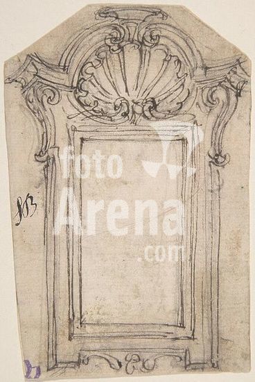 alb3606076 Design for a Frame Decorated with a Shell Motif. Artist: Giovanni Battista Foggini (Italian, Florence 1652-1725 Florence). Dimensions: sheet: 4 x 2 11/16 in. (10.2 x 6.8 cm). Date: 1652-1725. Museum: Metropolitan Museum of Art, New York, USA.