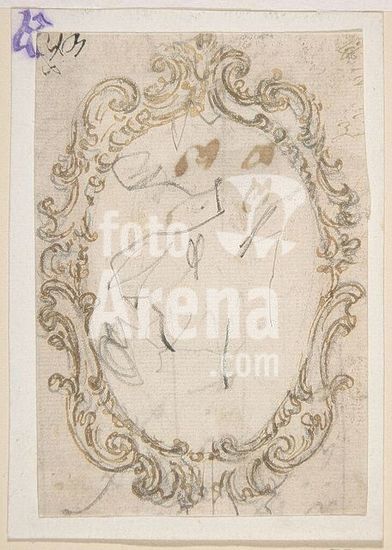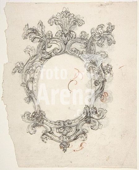 alb3606362 Design for a Decorative Oval Frame (Recto). Half sketch for a Decorative Oval Frame (Verso). Artist: Giovanni Battista Foggini (Italian, Florence 1652-1725 Florence). Dimensions: sheet: 7 3/8 x 6 in. (18.7 x 15.3 cm). Date: 1652-1725. Museum: Metropolitan Museum of Art, New York, USA.