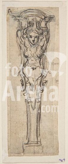 alb3681532 Design for a Frame or Epitaph (recto); Caryatid Supporting a Frame (verso). Artist: Attributed to Giovanni Battista Foggini (Italian, Florence 1652-1725 Florence). Dimensions: sheet: 9 3/4 x 6 in. (24.7 x 15.2 cm). Date: 1652-1725. Museum: Metropolitan Museum of Art, New York, USA.