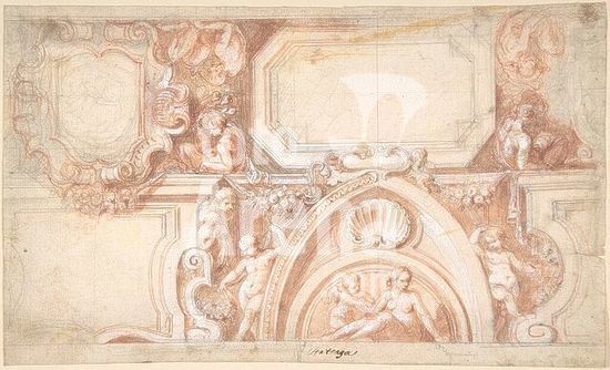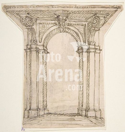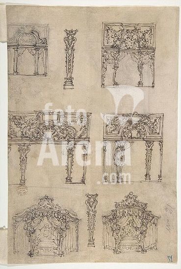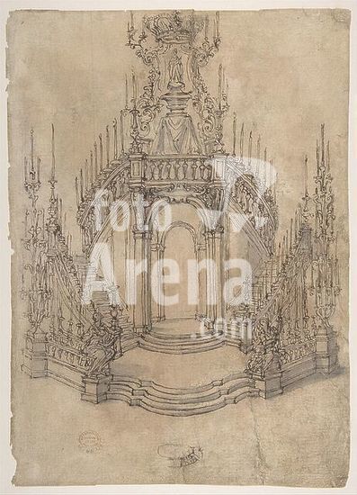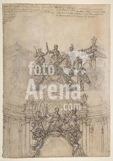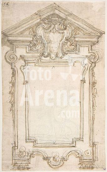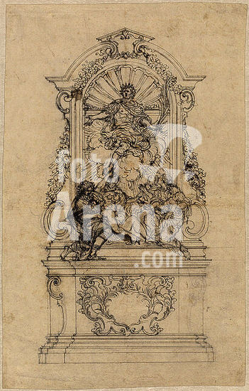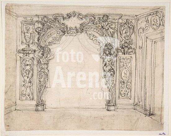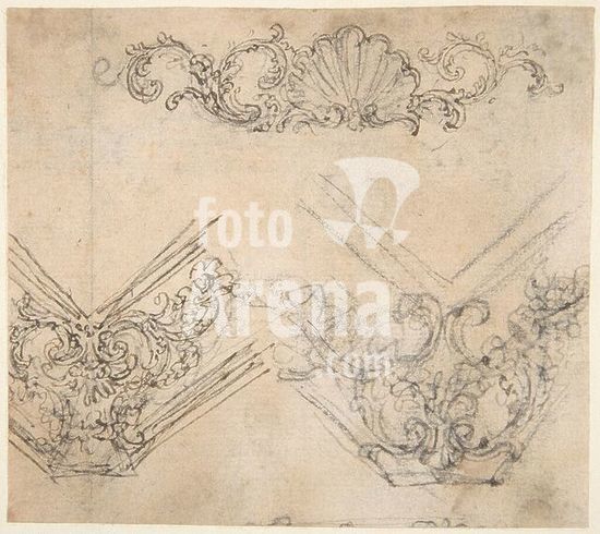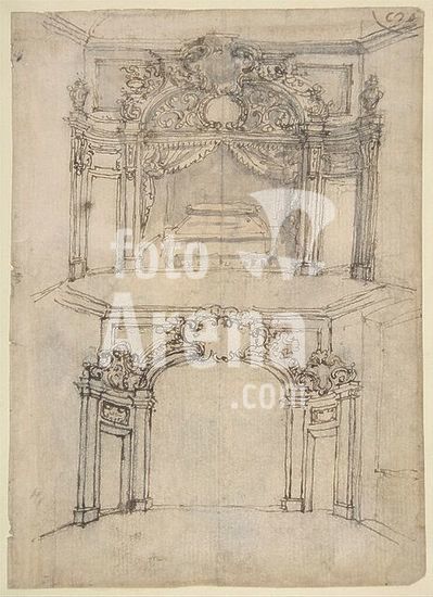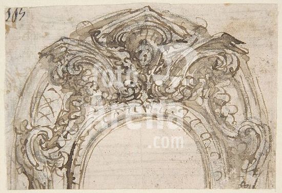 alb3622475 Design for a Proscenium or Alcove. Artist: Giovanni Battista Foggini (Italian, Florence 1652-1725 Florence). Dimensions: sheet: 4 9/16 x 5 11/16 in. (11.6 x 14.5 cm)(irregular borders). Date: 1652-1725. Museum: Metropolitan Museum of Art, New York, USA.