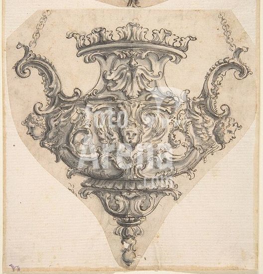 alb3670417 Design for Suspended Censer. Artist: Attributed to Giovanni Battista Foggini (Italian, Florence 1652-1725 Florence). Dimensions: sheet: 4 1/2 x 3 3/8 in. (11.4 x 8.5 cm). Date: 1652-1725. Museum: Metropolitan Museum of Art, New York, USA.