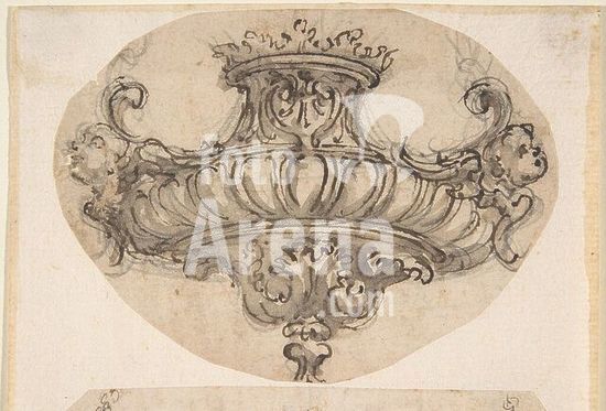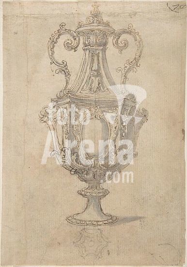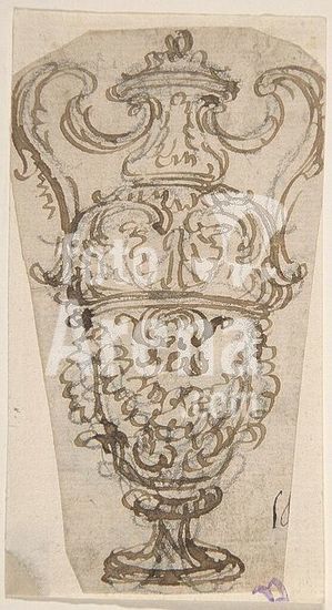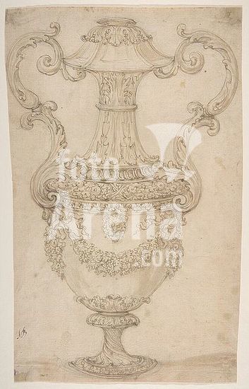 alb3610579 Design for a Vase with Handles, Decorated with a Festoon. Artist: Giovanni Battista Foggini (Italian, Florence 1652-1725 Florence). Dimensions: sheet: 13 1/16 x 8 5/16 in. (33.2 x 21.1 cm). Date: 1652-1725. Museum: Metropolitan Museum of Art, New York, USA.