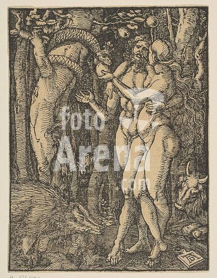 alb3613702 Adam and Eve, from the Small Passion, copy. Artist: After Albrecht Dürer (German, Nuremberg 1471-1528 Nuremberg); Johann Mommard. Date: n.d.. Museum: Metropolitan Museum of Art, New York, USA.