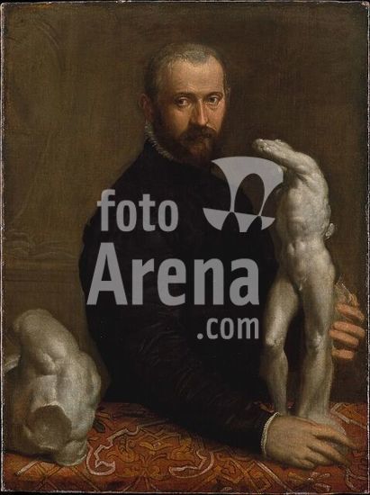 alb3615674 Alessandro Vittoria (1524/25-1608). Artist: Paolo Veronese (Paolo Caliari) (Italian, Verona 1528-1588 Venice). Dimensions: 43 1/2 x 32 1/4 in. (110.5 x 81.9 cm). Date: ca. 1580.In this portrait the features of the greatest Venetian sculptor of the later sixteenth century, Alessandro Vittoria, are recorded by the greatest painter of his generation, Veronese. Vittoria is shown with the model for one of his most famous statues, the Saint Sebastian, carved in 1561-62 for the church of San Francesco della Vigna in Venice. This figure was later cast by Vittoria twice as a bronze statuette--one of these belongs to the Metropolitan. Vittoria had portraits of himself holding his own sculpture painted by eminent artists at various times in his life; five were hung near the studio in his house where they could be seen by clients and visitors. This portrait was done around 1580 when the sitter was about fifty-five. Museum: Metropolitan Museum of Art, New York, USA.