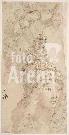 alb3622192 Design for a Helmet with a Sphinx presented in 3/4 View. Artist: Giovanni Battista Foggini (Italian, Florence 1652-1725 Florence). Dimensions: sheet: 7 x 3 7/16 in. (17.8 x 8.8 cm). Date: 1652-1725. Museum: Metropolitan Museum of Art, New York, USA.
