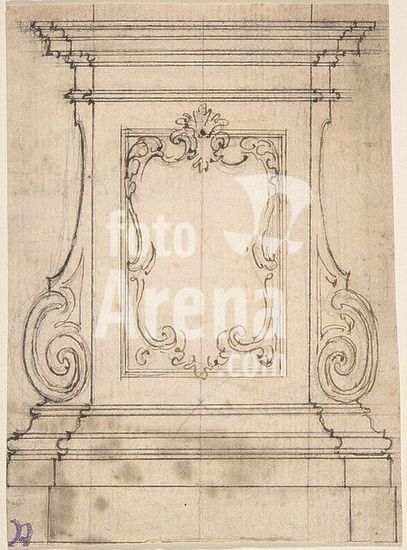 alb3622378 Design for a Pedestal (recto); Design for the Plan of a Monument (verso). Artist: Giovanni Battista Foggini (Italian, Florence 1652-1725 Florence). Dimensions: sheet: 5 1/4 x 3 11/16 in. (13.3 x 9.3 cm). Date: 1652-1725. Museum: Metropolitan Museum of Art, New York, USA.