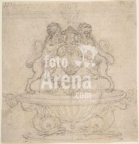 alb3624094 Design for a Fountain with Two Water-Spouting Lions (recto); Sketch for Triumph of Galatea [?] (verso). Artist: Attributed to Giovanni Battista Foggini (Italian, Florence 1652-1725 Florence). Dimensions: sheet: 5 15/16 x 5 3/4 in. (15.1 x 14.6 cm). Date: 1652-1725. Museum: Metropolitan Museum of Art, New York, USA.